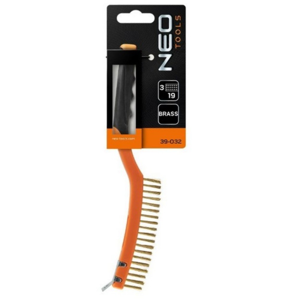 Щітка дротяна 3-х рядна NEO (арт. 39-032) призначена для видалення іржі та інших забруднень з різних поверхонь. Щетина щітки виготовлена з латунного дроту. Двокомпонентна нековзна ручка запобігає вислизанню виробу з руки.
