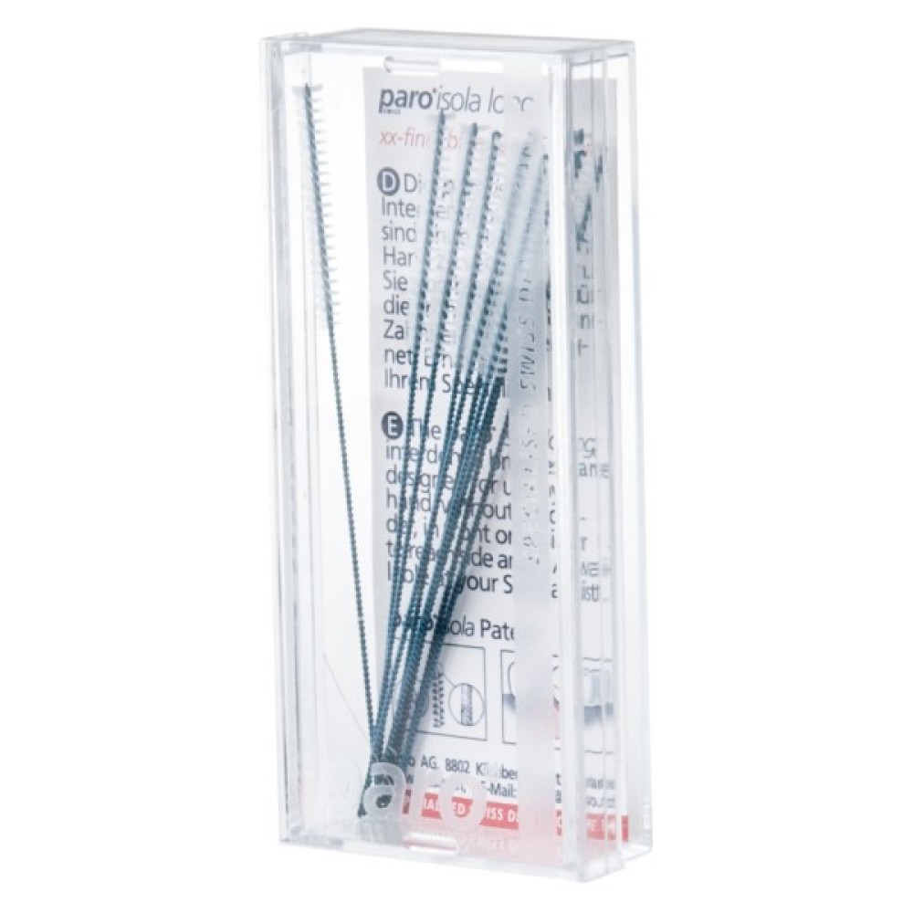 Paro Isola long Довгі міжзубні щітки використовуються вручну, немає потреби в тримачі. paro Isola long чудово очищають фронтальні та жувальні зони зубів. Довгий кінець йоржика може бути легко зігнутий у потрібну форму для зручності застосування. Усі paro інтердентальні йоржики мають захисне пластикове покриття стрижня.