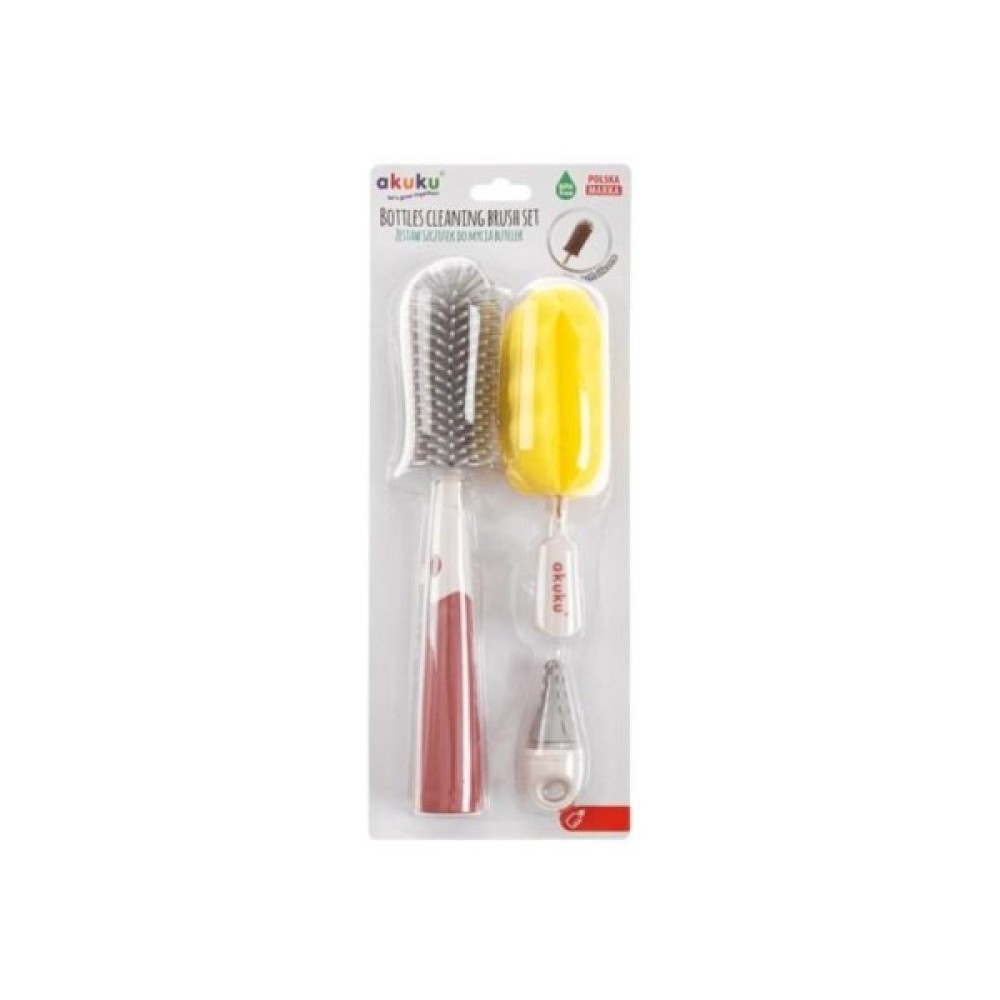 Набір щіток для пляшок та сосок дозволяє акуратно видаляти бруд у важкодоступних місцях. Оснащений двома змінними наконечниками для миття пляшок, один із яких закінчується щіткою з м'якою силіконовою щетиною, а інший виконаний із профільованої губки. Обидва кінці можна вільно міняти.