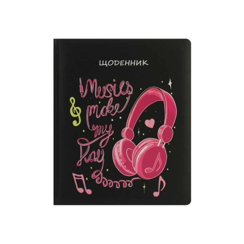 Шкільний щоденник, 165х210 мм, 48 листів, обкладинка - картон з поролоном, повнокольорова ламінована. Форзаци карти України та Європи. Додаткові сторінки: контактний лист вчителів та однокласників, табель успішності. Інформаційний блок правил та формул: алгебра, геометрія, тригонометрія, українська мова, фізика, переодична система хімічних елементів.
