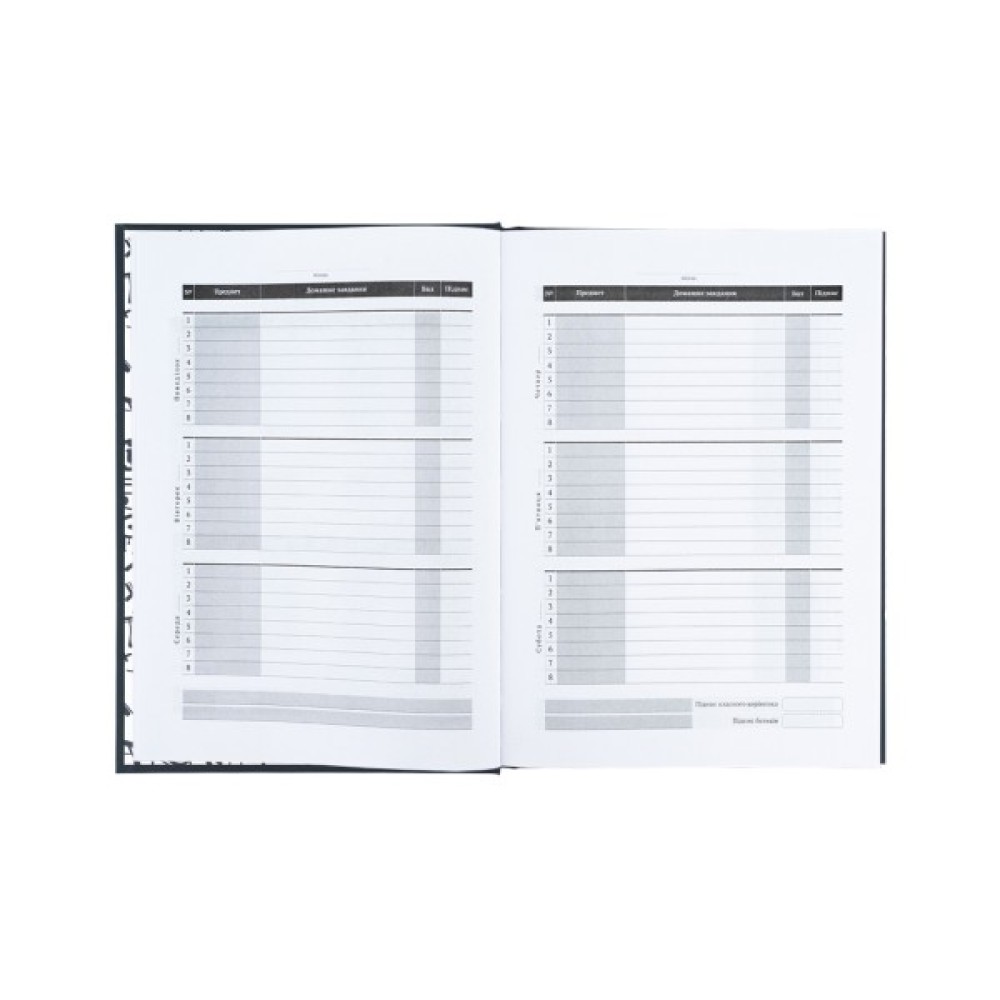 Щоденник розрахований на 46 тижнів. Також містить корисну інформацію: Державну символіку та Гімн, поле для списку вчителів та сторінку для підсумкових балів.