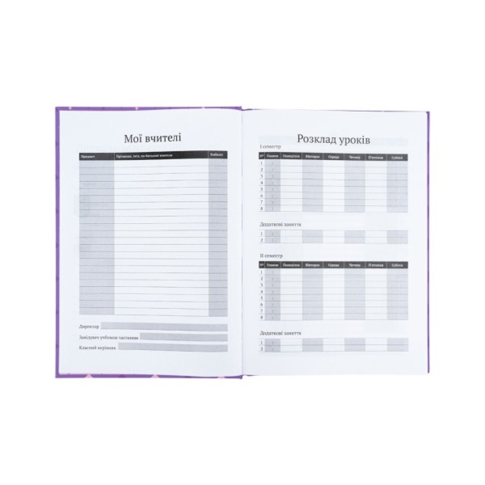 Щоденник розрахований на 46 тижнів. Також містить корисну інформацію: Державну символіку та Гімн, поле для списку вчителів та сторінку для підсумкових балів.