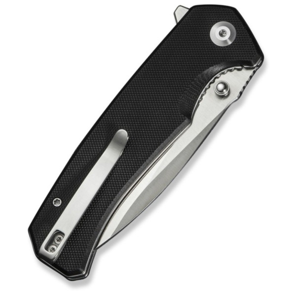 Ніж Sencut Skarnax оснащений сталевою кліпсою, адаптованою під різні стилі носіння і використання правшами та шульгами. Затискач є двопозиційним з можливістю кріплення з будь-якого боку руківʼя.
