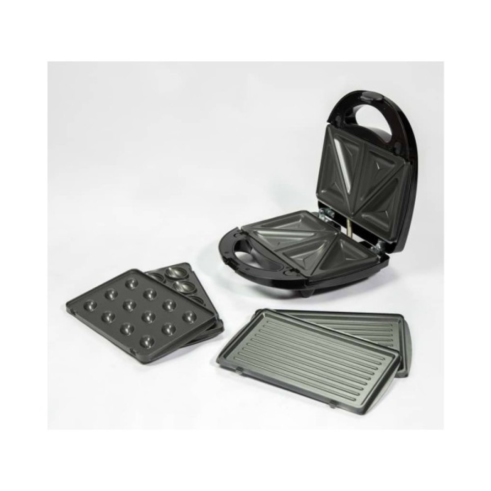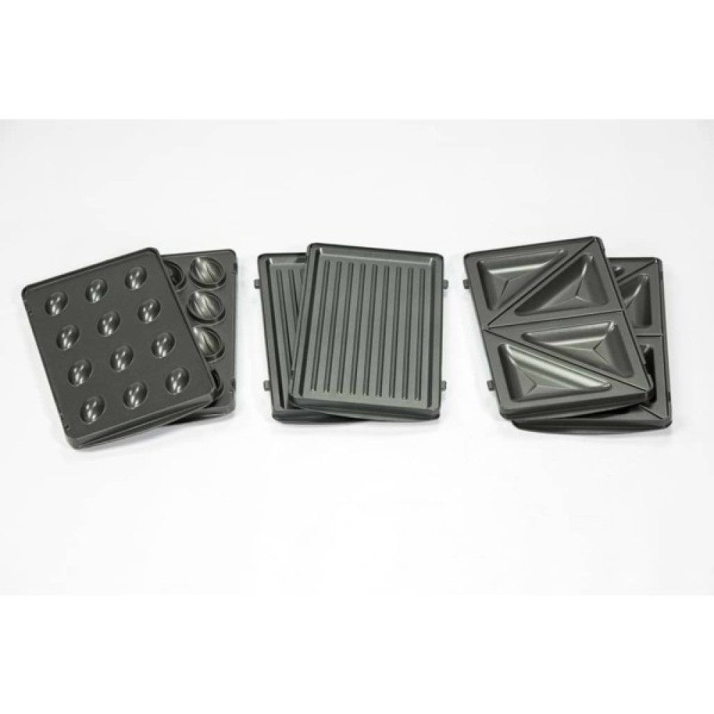 Мультимейкер Bakes for you 3 in 1 з антипригарним покриттям дозволяє значно скоротити (а в деяких випадках і повністю виключити використання жирів при приготуванні тіста. Міцний, довговічний корпус з нержавіючої сталі і пластика Змінні панелі – гриль, сэндвичница і горішниця. Электросэндвичница зручна у використанні і чищенні Ручки виготовлені з термостійкого матеріалу і в процесі роботи не нагріваються. У приладі використані 2 нагрівальних елемента, що дозволяє досягати рівномірної ступінь пропікання – зверху і знизу. Засувка забезпечує щільне прилягання кришок один до одного для рівномірного розподілу продуктів і тепла з поверхні плит. Індикатори живлення та нагрівання. Функція захисту від перегріву Прилад займає мало місця на кухні, може зберігатися як у вертикальному, так і горизонтальному положенні.