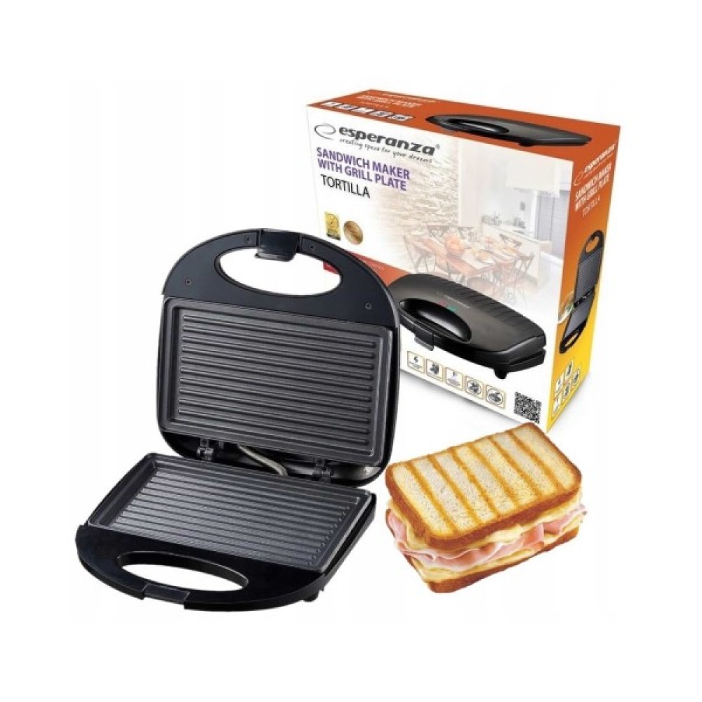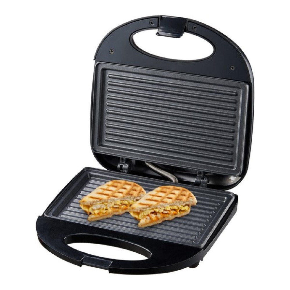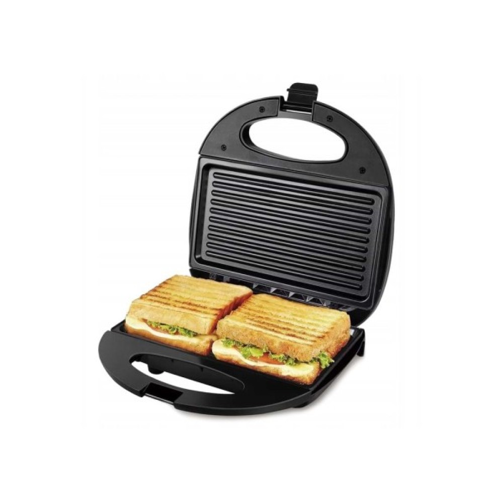 Пластини розрізають хліб по діагоналі, запечатуючи краю і утримуючи начинку всередині сендвічів. Завдяки антипригарному покриттю панелей, хліб рівномірно обсмажується, що не пригорая до форми. Вбудований термостат автоматично підтримує необхідну для готування температуру.