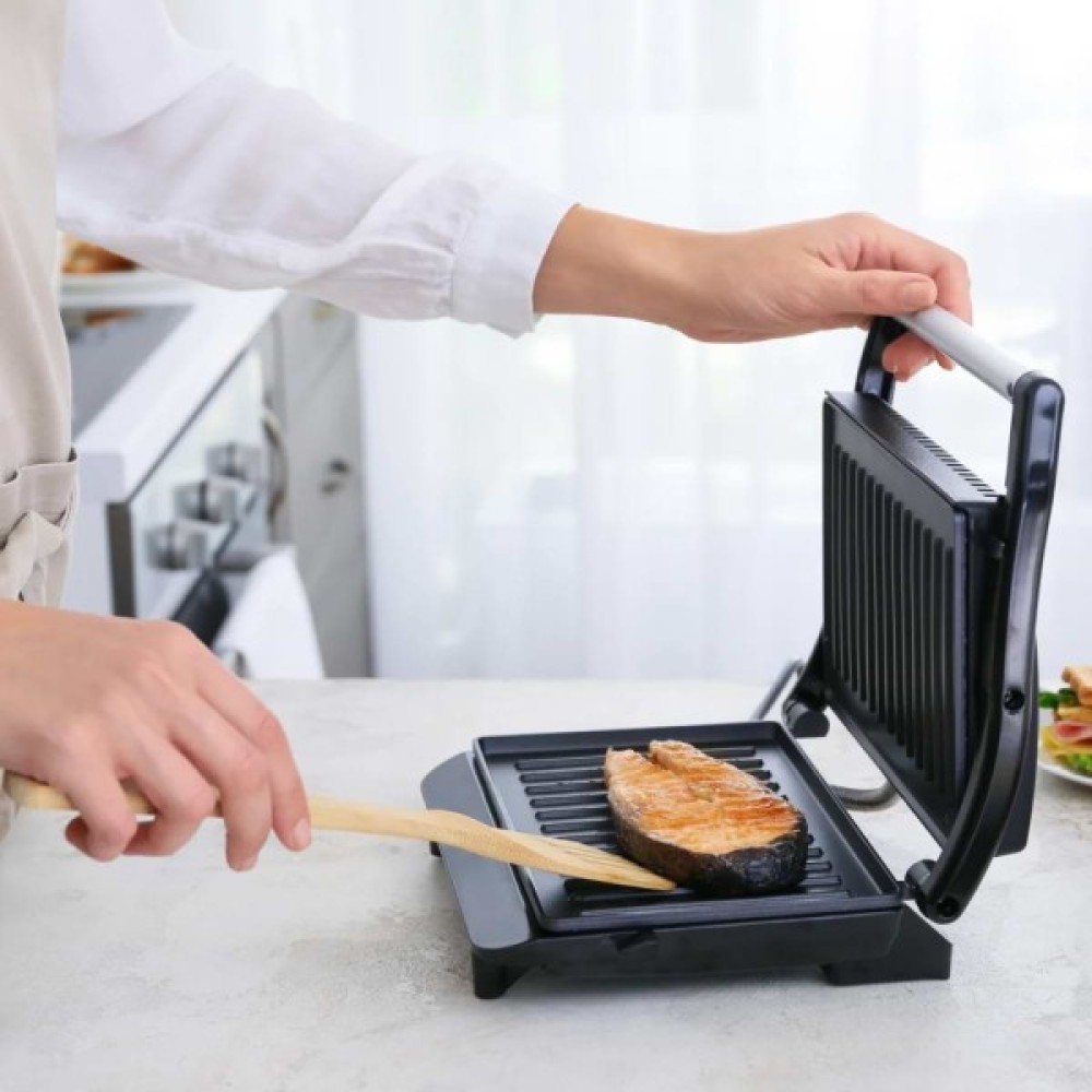 Сучасний арсенал техніки для кухні дозволяє проводити кулінарні експерименти щодня. Побутові прилади спрощують життя й заощаджують час, водночас додаючи різноманітність до раціону харчування будь-якої сім’ї. Одним з таких пристроїв є настольний електричний гриль MG-364 – компактний агрегат із неймовірними можливостями. Завдяки потужності в 740 Вт окрім звичних бутербродів-гриль можна приготувати максимально корисні овочі на грилі, м’ясо чи котлети для бургерів. Із антипригарним покриттям можна бути впевненим, що нічого з приготовленого на грилі не залишиться на панелях, а очистка буде легкою та швидкою. Світловий індикатор сповістить про те, коли панелі розігріті для приготування, а ручка, що не нагрівається, збереже долоні від опіків.
