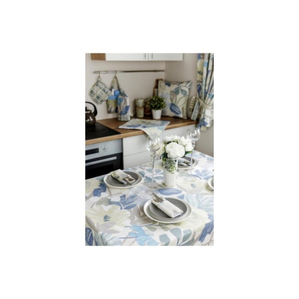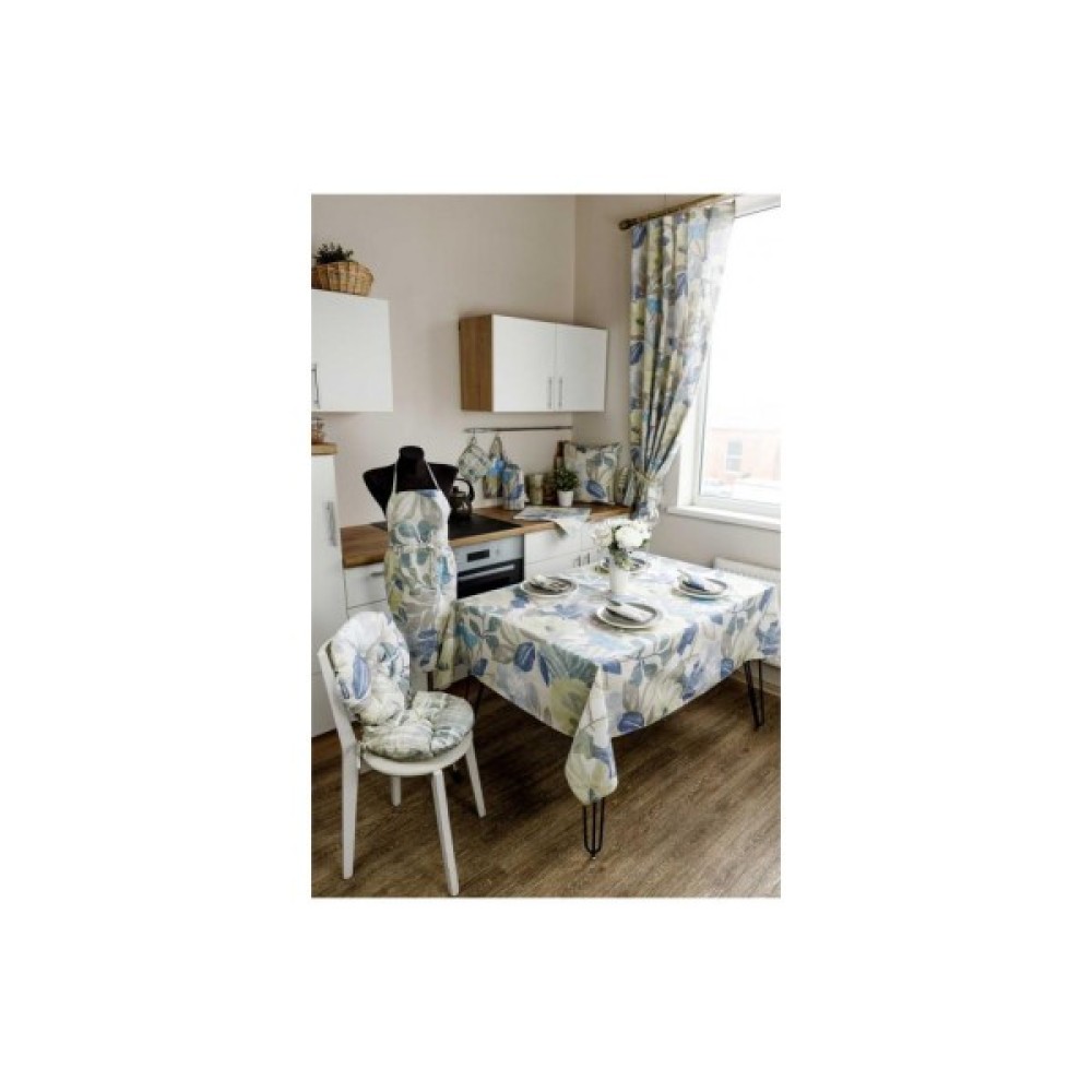 Серветка із натуральної іспанської тканини. До серветки радимо вам додатково замовити скатертину, набір рушників, доріжку та набір рукавиця+прихватка для кухні. А також комплект штор та подушки на стілець. Вся колекція Блакитні квіти з принтами Клітина та Блакитні Квіти, які ідеально поєднуються одна з одною.