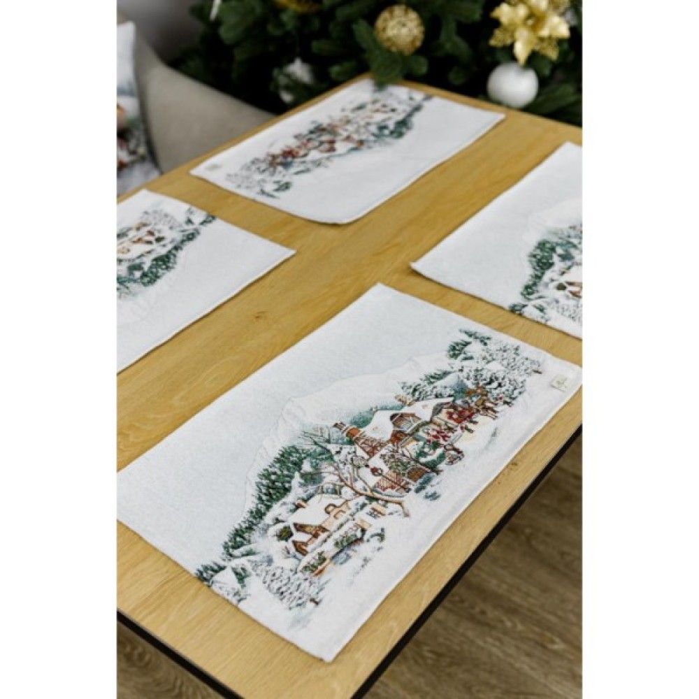 Купити новорічну серветку з велюром Зимове місто