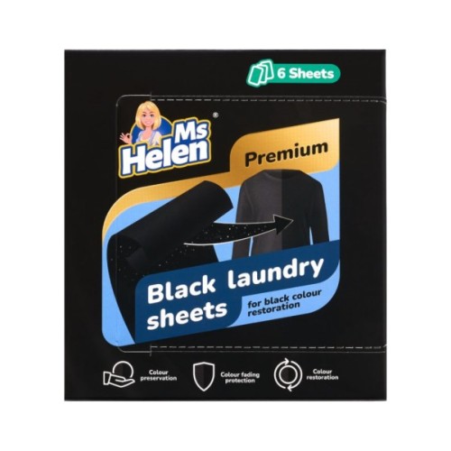 Серветки Ms Helen для оновлення чорного кольору тканин відновлюють інтенсивність відтінків під час чергового циклу прання