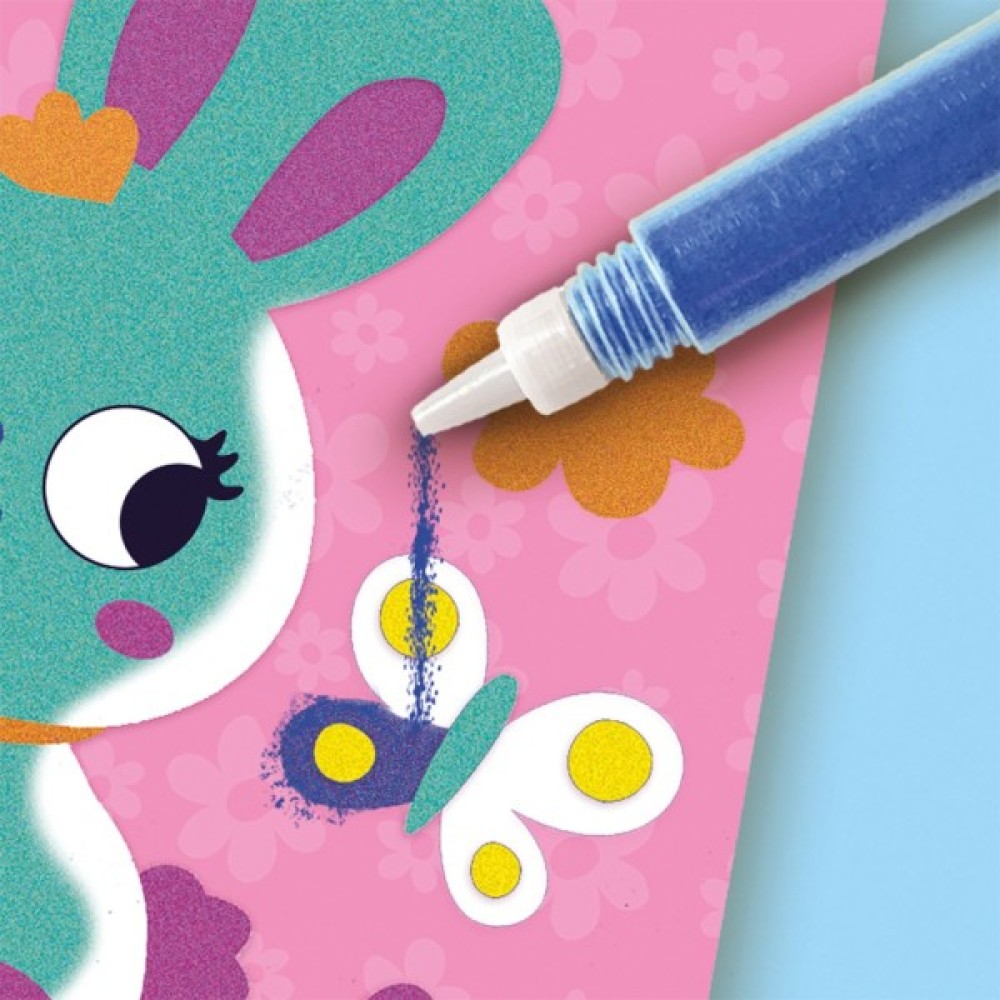 Ви любите кольоровий пісок? Тоді цей набір для творчості від SES Creative безперечно для Вас! Нанесіть пісок п'яти різних кольорів на липкі частини яскравих карток, і вийдуть красиві кольорові листівки. Ви можете зробити власний неповторний витвір, наприклад лисичку, зайчика та оленя. А завдяки дуже зручній формі тюбиків пісок легко наноситься, а також тюбики легко закриваються та відкриваються.