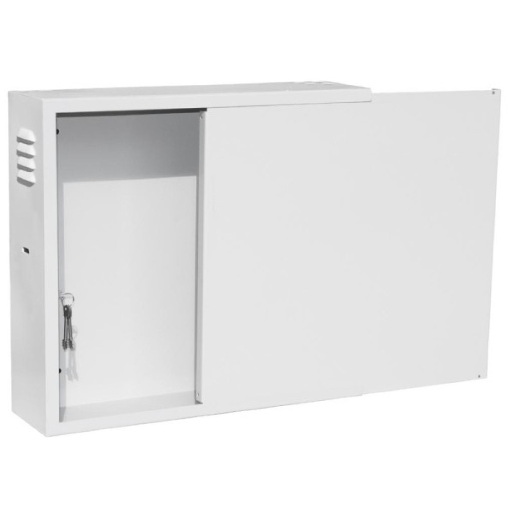 Антивандальний бокс БК-550-З-1-2U встановлюється в місцях громадського доступу. Суцільнозварна конструкція з листової сталі володіє необхідною міцністю і жорсткістю для захисту від крадіжок і пошкоджень спеціалізованого обладнання. Дверцята пенального типу відсувається в ліву сторону і закривається надійним сувальдним замком. Дана модель призначена для внутрішньої установки. Кабельні вводи спеціального виду перешкоджають розкрадання проводів. Для стабільної роботи електронних компонентів в стінках боксу передбачені вентиляційні решітки, що забезпечують охолодження. Допускається статичне навантаження в межах 60 кг.