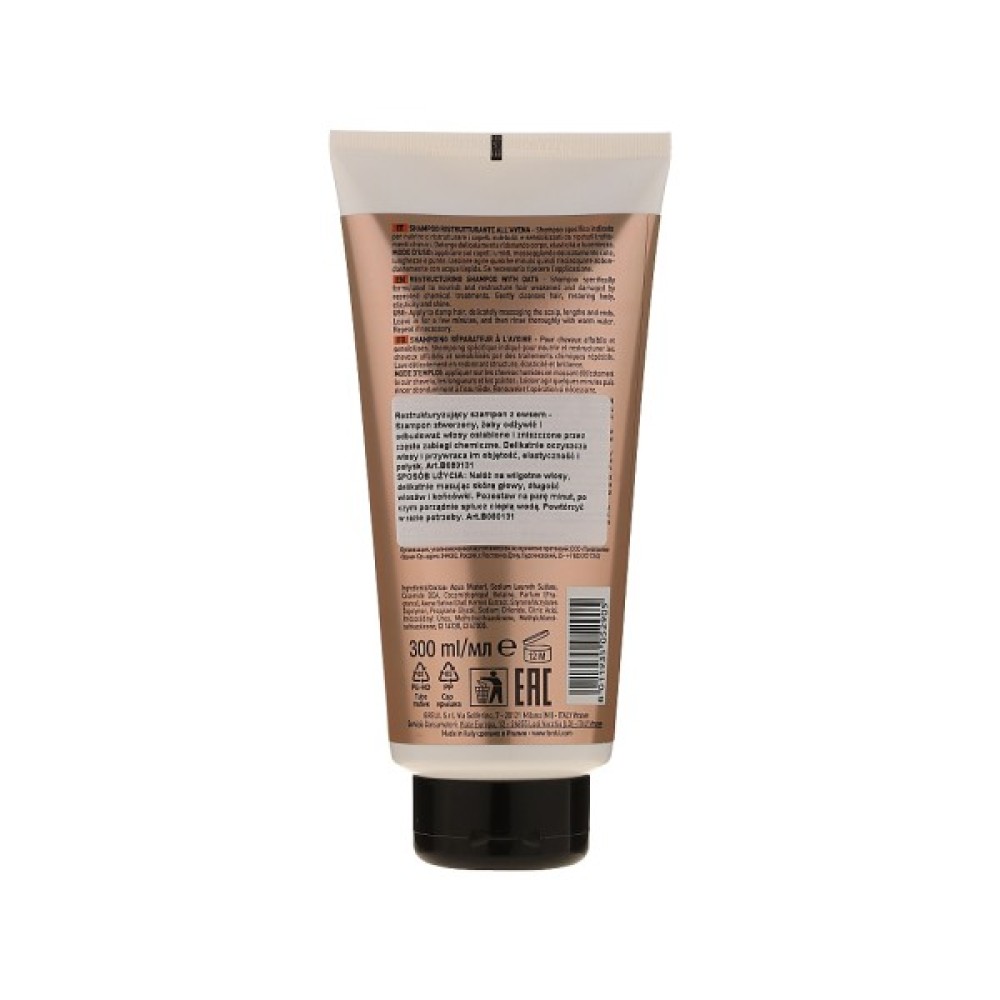 Екстракт вівса у складі багатий на протеїни, які глибоко проникають у волосся, забезпечуючи йому пружність, м'якість і неперевершений блиск. Формула без вмісту силікону робить шампунь ідеальним вибором для тих, хто шукає природний догляд. Він делікатно очищує волосся і шкіру голови, одночасно живлячи та відновлюючи їх зсередини.