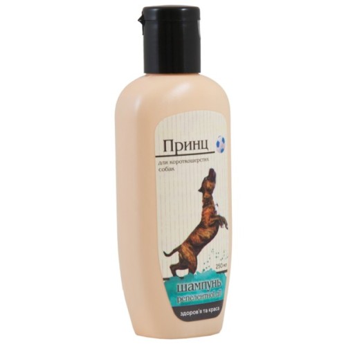 Гігієнічний шампунь для короткошерстих собак «Принц» має репелентну дію проти бліх, кліщів та інших ектопаразитів. Репелентний ефект досягається завдяки унікальному поєднанню лікарських трав. Шампунь знімає подразнення, пом’якшує та тонізує шкіру, сприяє загоюванню розчосів.