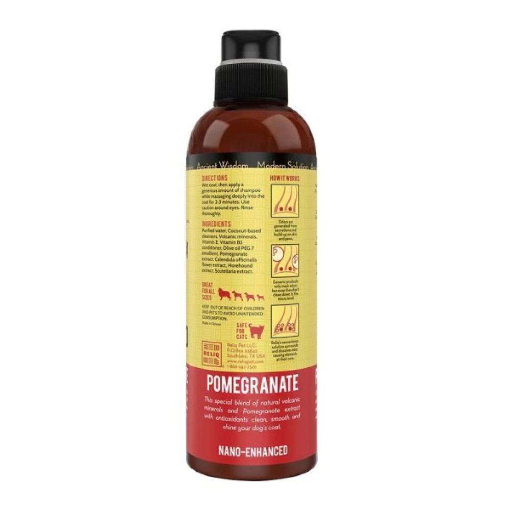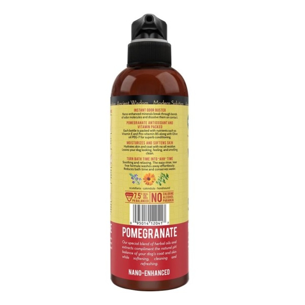 Особлива суміш натуральних вулканічних кварцових мінералів та олія гранату, насичена антиоксидантами, очищує, зволожує, заспокоює та надає сяйва шерсті собак. Не потребує використання кондиціонеру. Натуральна формула «без сліз».