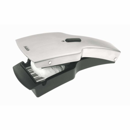 Слайсер Tari призначений для нарізання продуктів рівними пластинами по 5 мм. 10 лез із японської сталі перетворюють процес нарізання на дитячу гру. Спеціальний замок дає змогу економити місце, коли прилад не використовується.