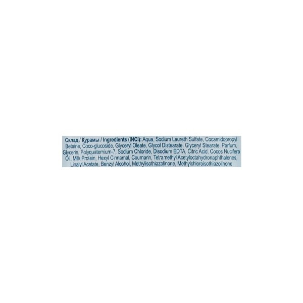 Aqua, Sodium Laureth Sulfate, Cocamidopropyl Betaine, Coco-glucoside, Glyceryl Oleate, Glycol Distearate, Glyceryl Stearate, Parfum, Glycerin, Polyquaternium-7, Sodium Chloride, Disodium EDTA, Citric Acid, Cocos Nucifera Oil, Milk Protein, Hexyl Cinnamal, Coumarin, Tetramethyl Acetyloctahydronaphthalenes, Linalyl Acetate, Benzyl Alcohol, Methylisothiazolinone, Methylchloroisothiazolinone