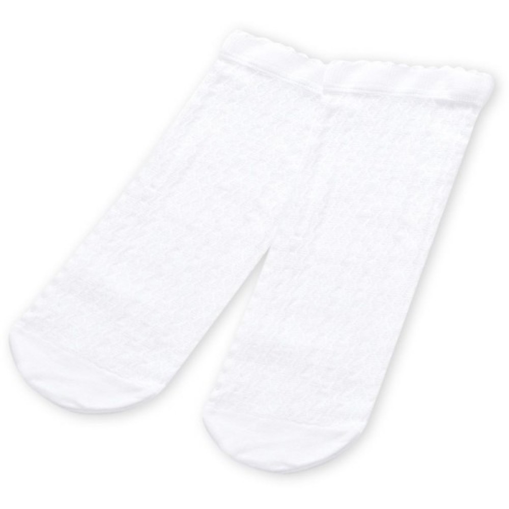 Білі фабричні капронові шкарпетки з цікавим візерунком в дрібні ромбики для дівчинки, з м'якого мікроволокна (щільністю 40 micro) зі зручною резинкою і укріпленим носком.