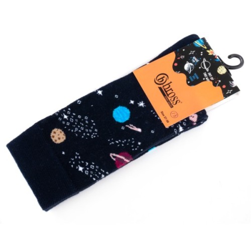 • Зручні, якісні, еластичні шкарпетки висоти вище середньої, прикрашені кольоровими малюнками на тематику космосу - необхідна для щоденного використання деталь гардеробу для кожної дитини.