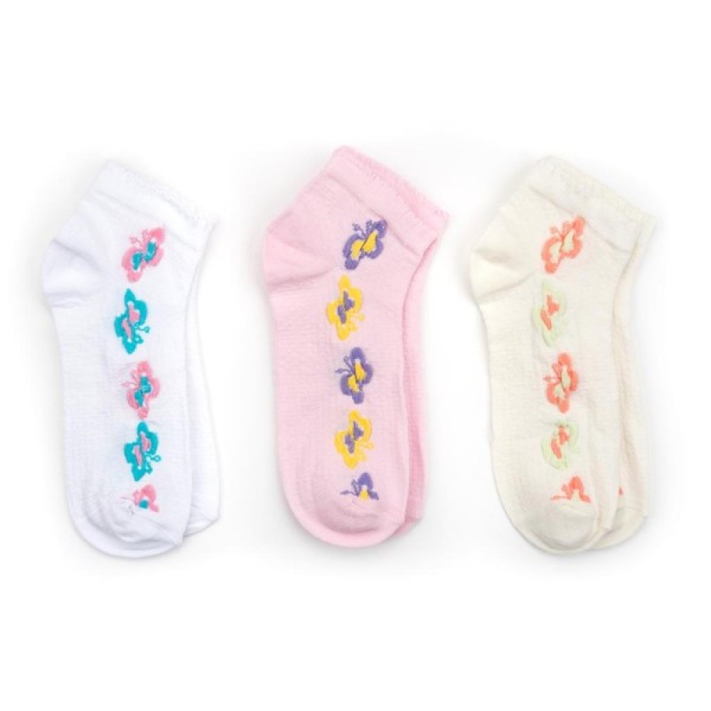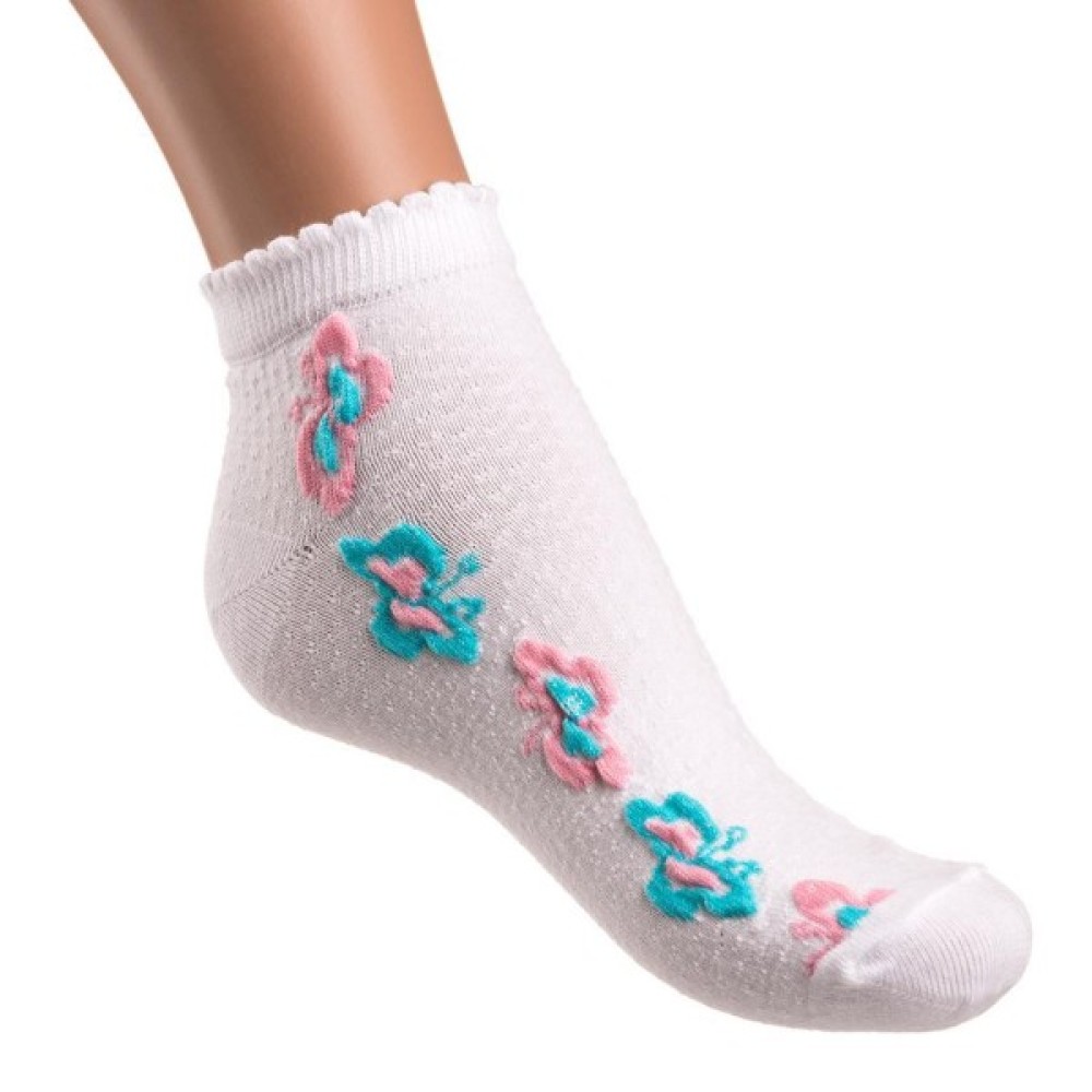 Ажурні тонкі шкарпетки з красивою структурою з різнокольоровими метеликами по бічних сторонах від відомого турецького виробника виглядають дуже привабливо. Гумка м'яка, подвійна, добре тягнеться і тримає форму, щільна, але не буде здавлювати дитячу ніжку. Шкарпетки м'які і приємні на дотик, зроблені з високоякісної сировини на основі бавовни. Вони не розтягуються, не сідають, не линяють, і не скачуються після прання. Завдяки своїм складовим добре тягнуться, відмінно носяться, і неймовірно приємні до тіла!