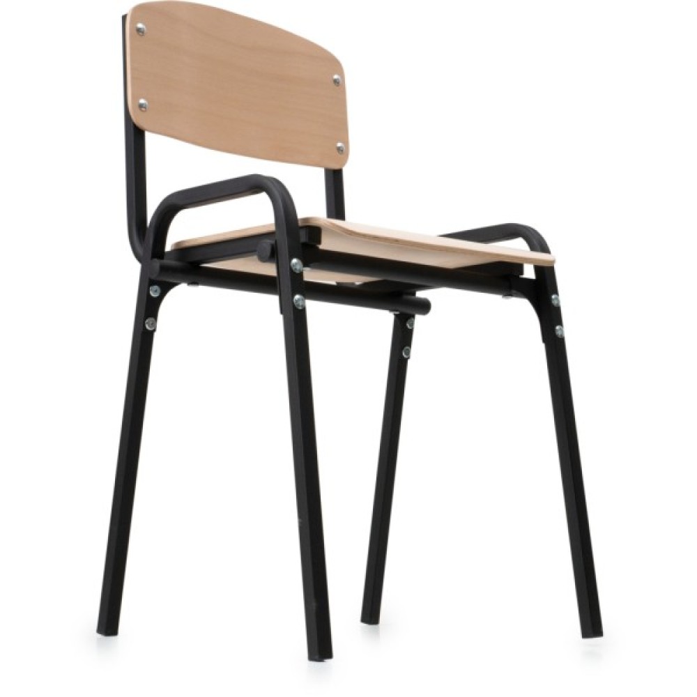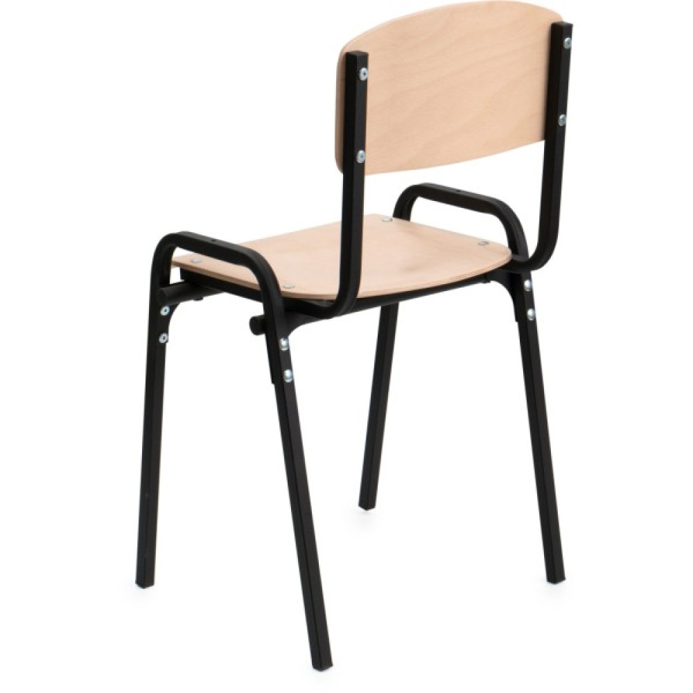 Каркас виготовлений з надійної металевої труби, яка витримує щоденне інтенсивне використання, а сидіння розміром 38×38 см дозволяє зручно розміститись учням різного віку. Завдяки висоті 46 см до сидіння та 81,5 см зі спинкою, стілець має оптимальні пропорції для правильної посадки.