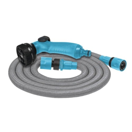 Набір для поливу Cellfast BASIC, шланг 7.5-22.5 м, що розтягується, зрошувач, комплект підключення 1/2-3/4" 19-047. У набір для поливу входить розширювальний шланг, 8-функціональний ручний спринклер, швидкісний з’єднувач шланга – потік води, багатофункціональний з’єднувач з внутрішньою різьбою – упор G3/4”, багатофункціональний з’єднувач з внутрішньою різьбою G1/2” – G3 /4”. Інноваційний і компактний садовий шланг, який збільшує свою довжину приблизно в три рази під час потоку води під тиском і скорочується автоматично після спорожнення.