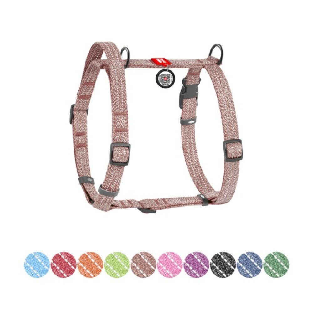 Шлея виготовлена з відновленої бавовни, що робить її екологічно чистою та зносостійкою. Гіпоалергенний матеріал забезпечує комфорт для пухнастого улюбленця, а вплетена світловідбивна нитка гарантує безпеку під час прогулянок у темний час доби. Шлея розроблена таким чином, що при натягу повідця не відбувається стискання дихальних шляхів тварини. Має 2 півкільця для повідця (верхнє та нижнє), що дозволяє більш рівномірно розподілити фізичне навантаження на опорно-руховий апарат собаки.