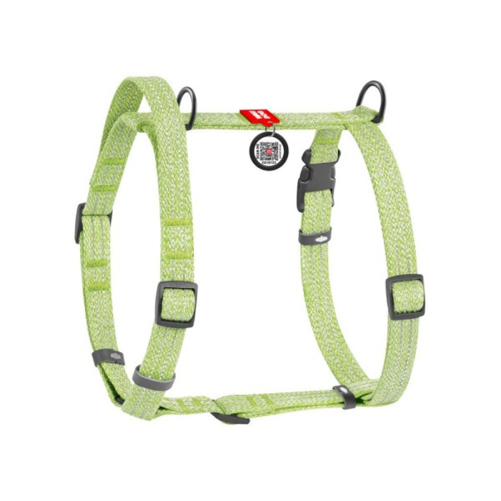 Шлея для собак WAUDOG Н-подібна Re-cotton з QR паспортом, світловідбивна L салатова (25935)