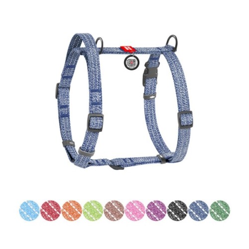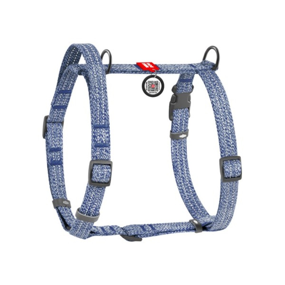 Шлея виготовлена з відновленої бавовни, що робить її екологічно чистою та зносостійкою. Гіпоалергенний матеріал забезпечує комфорт для пухнастого улюбленця, а вплетена світловідбивна нитка гарантує безпеку під час прогулянок у темний час доби. Шлея розроблена таким чином, що при натягу повідця не відбувається стискання дихальних шляхів тварини. Має 2 півкільця для повідця (верхнє та нижнє), що дозволяє більш рівномірно розподілити фізичне навантаження на опорно-руховий апарат собаки.
