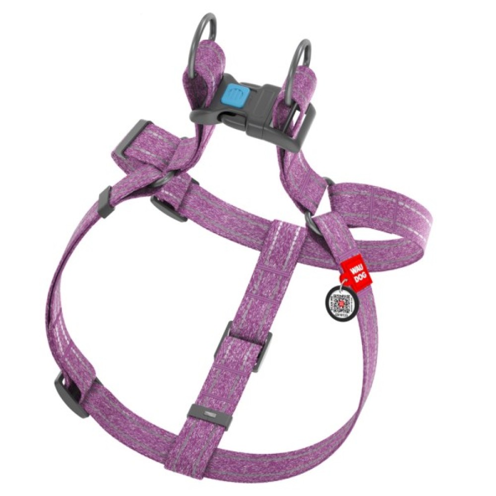 Шлея для собак WAUDOG Re-cotton з QR-паспортом S фіолетова (03249)
