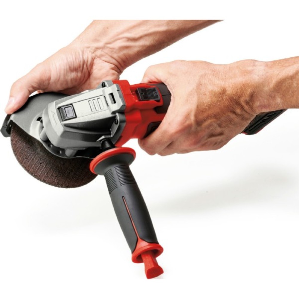 Інструмент оснащений диском діаметром 115 мм, що ідеально підходить для обробки різних матеріалів: металу, каменю, пластику, бетону, дерева чи труб. Ергономічний дизайн включає зміцнений корпус та зручну центральну рукоятку, яка може бути встановлена в двох положеннях для максимального комфорту та контролю.