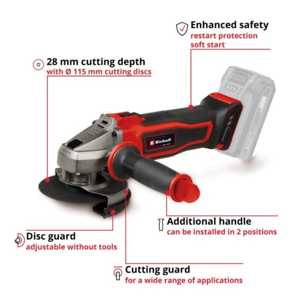 Шліфувальна машина Einhell TE-AG 18/115-2 Li - Solo PXC 18В (4431166) — це передовий інструмент для тих, хто цінує якість, ефективність та безпечність у кожному проекті. Цей пристрій втілює у собі інноваційні технології та бездоганний дизайн, роблячи його незамінним помічником як для професійних майстрів, так і для побутових користувачів.