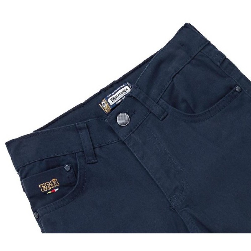 Відмінна, якісна модель зі зручною посадкою, зшита з еластичної, тонкої, але щільної бавовни, з додаванням невеликого % лайкри, для підтримки форми і збереження при носці товарного вигляду виробу. Штанини прямі, злегка завужені до низу. Штани застібаються на металевий ґудзик-кнопку і капронову блискавку. Позаду - 2 накладних, а спереду - 2 прорізних кишені та 1 маленька внутрішня. Края входу в кишені – посилені акуратними, декоративними, металевими блочками. На поясі є шльовки для ременя, а всередині, ззаду, вшита гумка для регулювання об'єму талії, що забезпечить максимальну зручність та комфорт. Штани прикрашені двома невеликими, дуже акуратно вишитими, фірмовими логотипами «Е & Н».