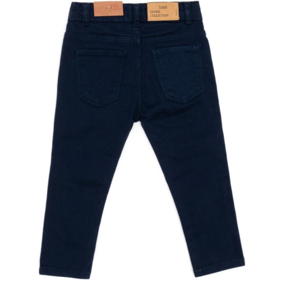 • Штани виготовлені з якісного, щільного стрейчевого котону темно-синього кольору, без утеплення. Тканина щільненька, приємна та бархатиста на дотик.