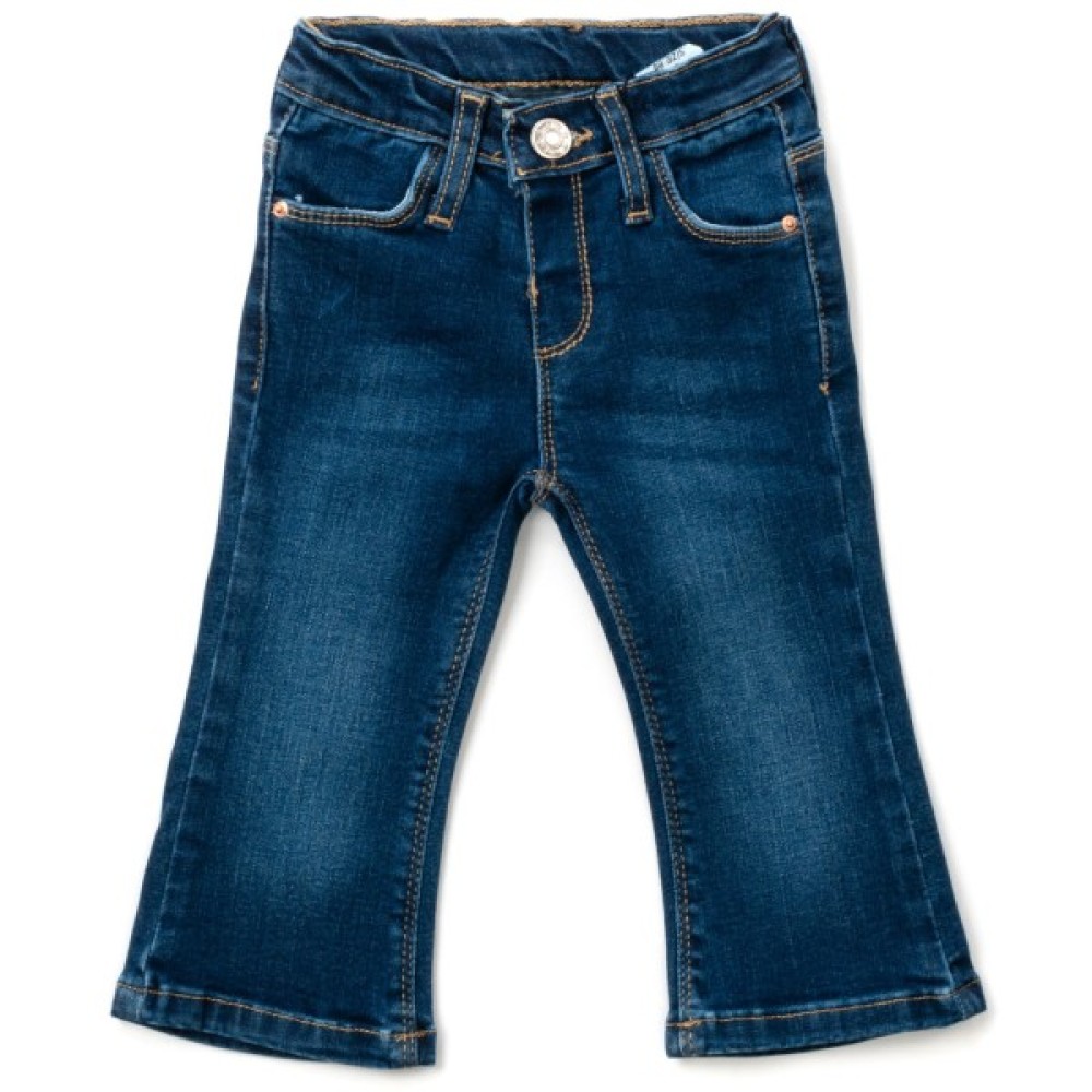 Джинси мають класичний дизайн, трохи розкльошений до низу крій і високу посадку. Для зручності дитини застібка «блискавка» відсутня, є тільки гудзик. Без проблем зможете надіти джинси на підгузок.