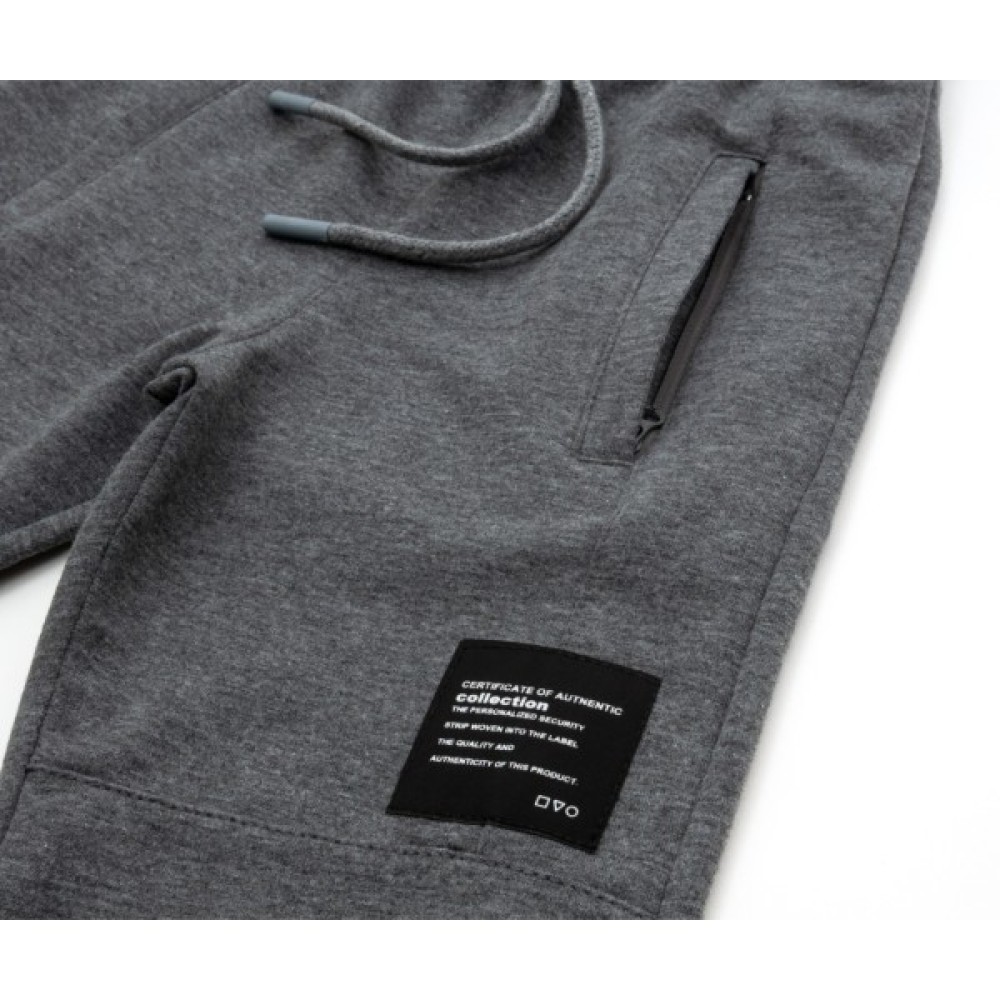 - Зручні, вільні спортивні штани на трикотажних манжетах знизу і під гумку в поясі, прикрашені з лівого боку стильною нашивкою.