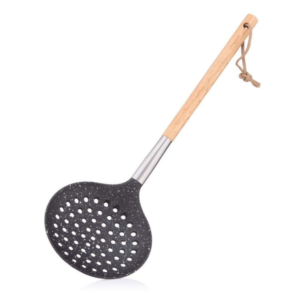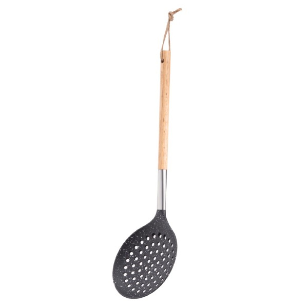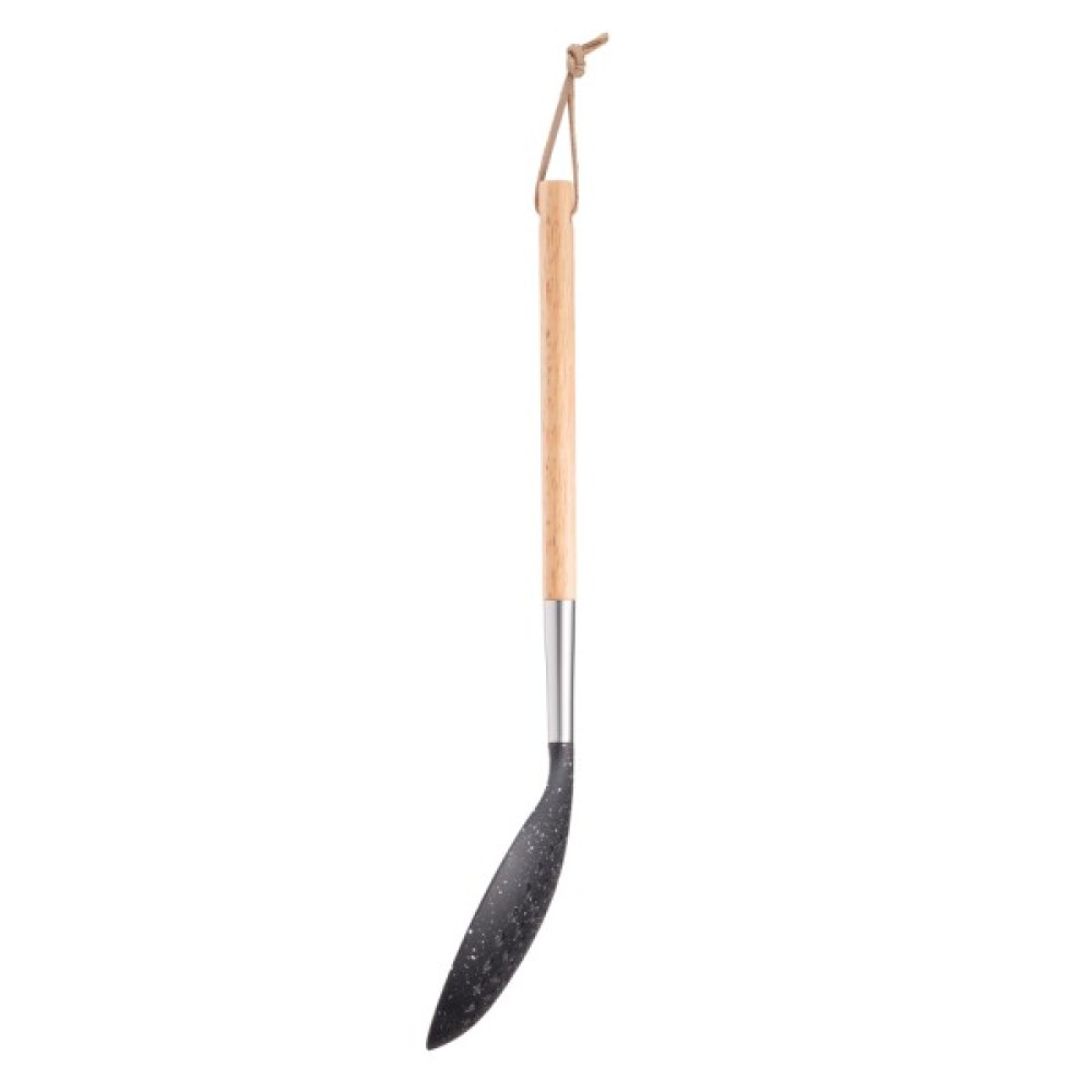 Шумівка ARDESTO Midori стане в пригоді під час приготування страв. Виготовлена з нейлону чорного кольору – матеріалу, який витримує високу температуру і безпечний для тефлонового покриття. Зручне руків’я з дерева з елементом із нержавіючої сталі. Розмір приладдя 36 × 11,2 см. Виріб не призначений для миття в посудомийній машині.