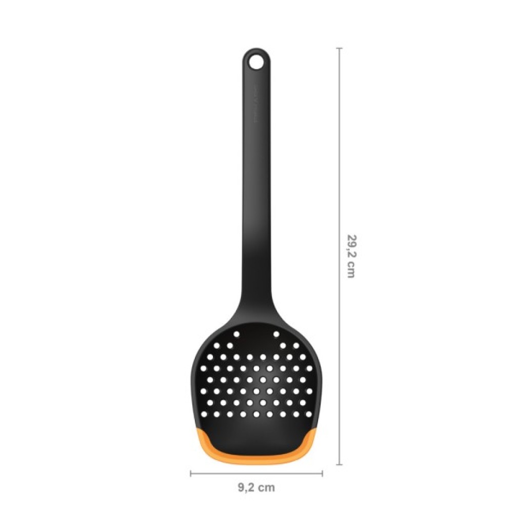 Ложка для спагети з силіконом Functional Form арт. 1027302 ідеально підходить для приготування і подання спагетти, локшини і феттучини. Насадка для соусу з силіконовим покриттям допомагає відскрібати увесь соус з місткості для макаронів. Кухонний гаджет оснащений вбудованим інструментом для виміру порцій спагетти. Вбудована підставка для інструментів підтримує чистоту кухонних стільниць. Інструменти Functional Form спроектовані так, щоб їх було легко використовувати, чистити і зберігати.