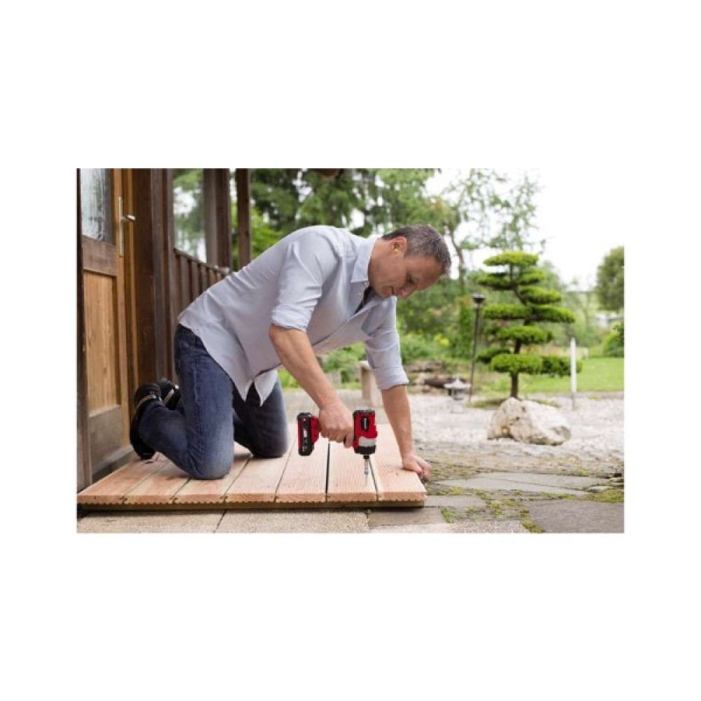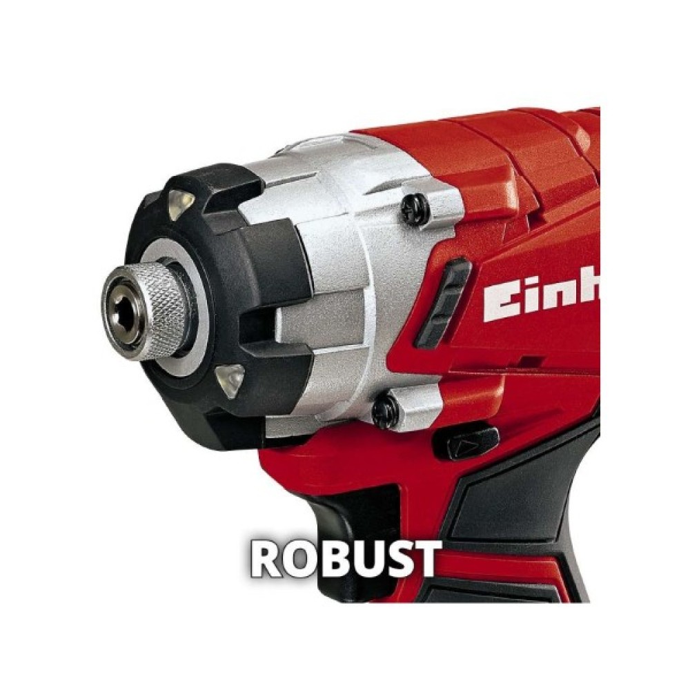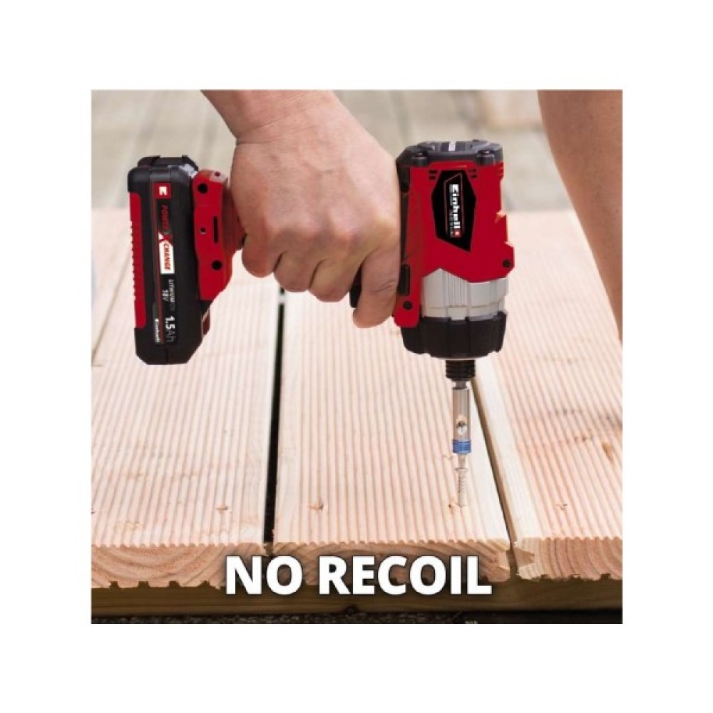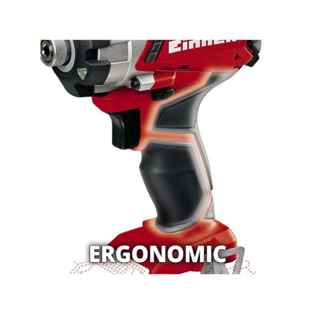 Новий ударний шуруповерт лінійки Power X-Change system Einhell TE-CI 18 Li Solo серії Expert plus призначений для робіт із деревом, металом: для загвинчування/вигвинчування довгих кріпильних елементів як вдома, так і в майстерні чи гаражі. Einhell TE-CI 18 Li Solo бездротовий ударний шуруповерт є високоякісним, потужним ударним інструментом, який дає нагоду закручувати навіть довгі шурупи без особливих зусиль. Він обладнаний унікальним потужним Triatlon двигуном із максимальним затягувальним моментом 140 Нм, високою швидкістю й ефективністю. Завдяки компактній і легкій конструкції з ергономічним м'яким покриттям поверхні ударний шуруповерт дуже добре лежить у руці. Він має спеціальний ударний механізм для усунення будь-яких торсіонних сил на зап'ясті користувача. Отже, користувач може легко затягнути навіть великі та довгі гвинти. Інструмент постачається без акумулятора та зарядного пристрою, але йому може надати руху Power X-Change акумулятор.
