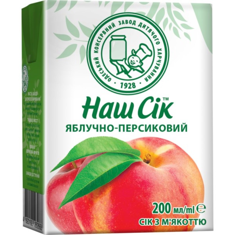 Сік дитячий Наш Сік Яблучно-персиковий з м'якоттю 200 мл (4820003689998)