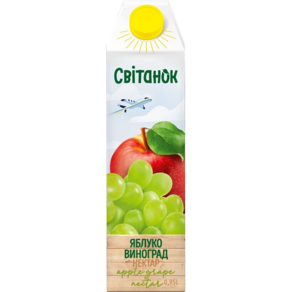 Нектар Світанок – світлий та приємно солодкий, саме такий сік виходить, поєднуючи стиглі яблука та білий виноград. Яблучно-виноградний нектар, освітлений пастеризований. Із білих сортів винограду.