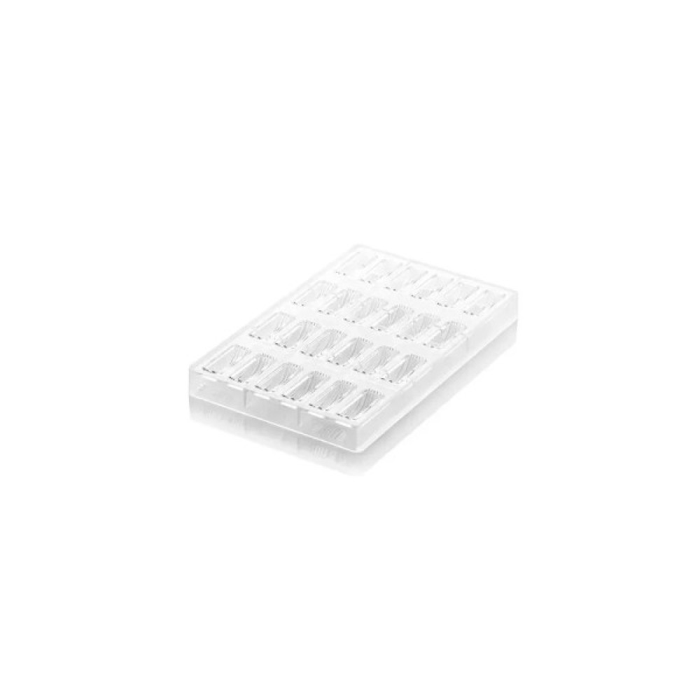Біла форма для приготування порційних десертів та цукерок від бренду Silikomart. Цей новий винахід у світі кулінарних пристроїв розширює можливості створення творчих десертів; кондитерські заготовки виймаються легко, із повним збереженням свого зовнішнього вигляду. Її можна використовувати в морозильній камері та мікрохвильовій печі, переставляти з холоду в жар без пауз.