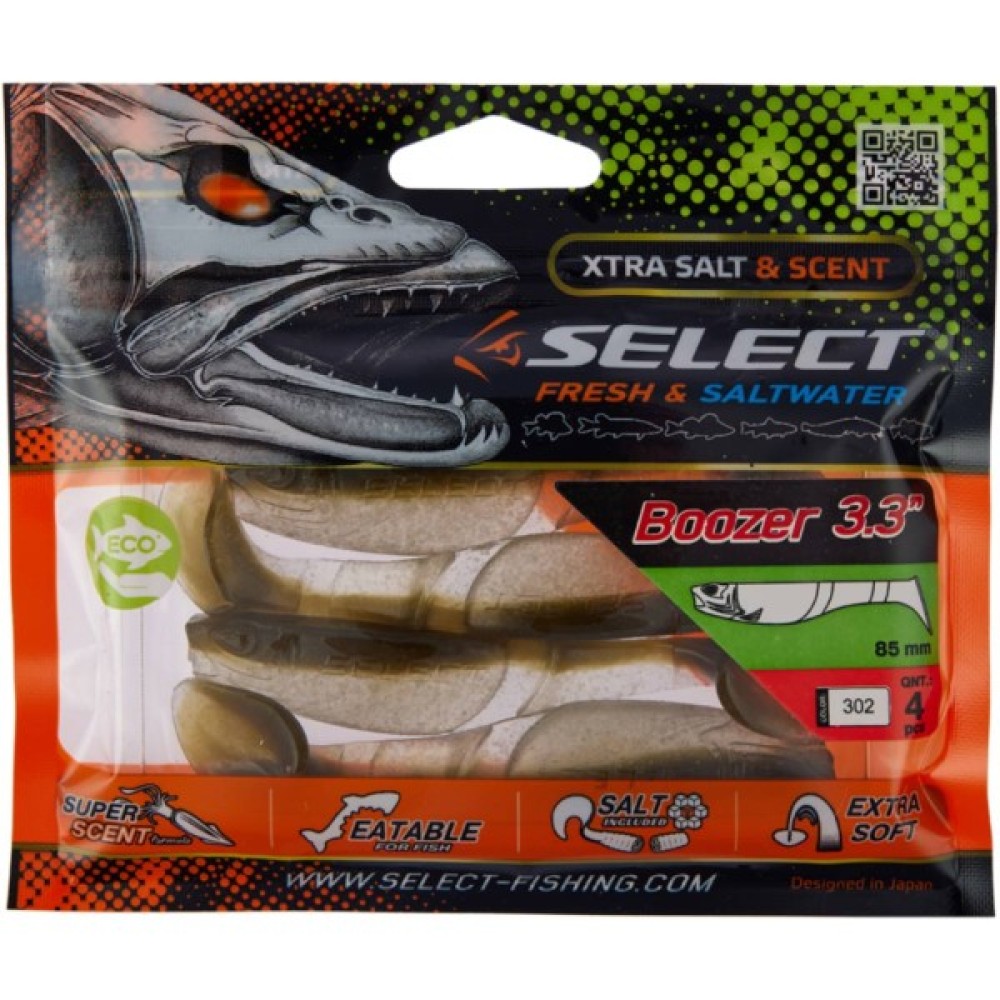 Силікон Select Boozer - об'ємний віброхвіст з масивним тілом і яскраво-вираженою грою. Це універсальна приманка для лову хижака в різних умовах і в різні пори року. Унікальна форма "п'ятки" і хвостової частині дозволили добитися особливої ​​виразної гри. Геометрія віброхвоста спроектована таким чином, що він легко включається в роботу навіть на повільній проводці з легкими вагами.