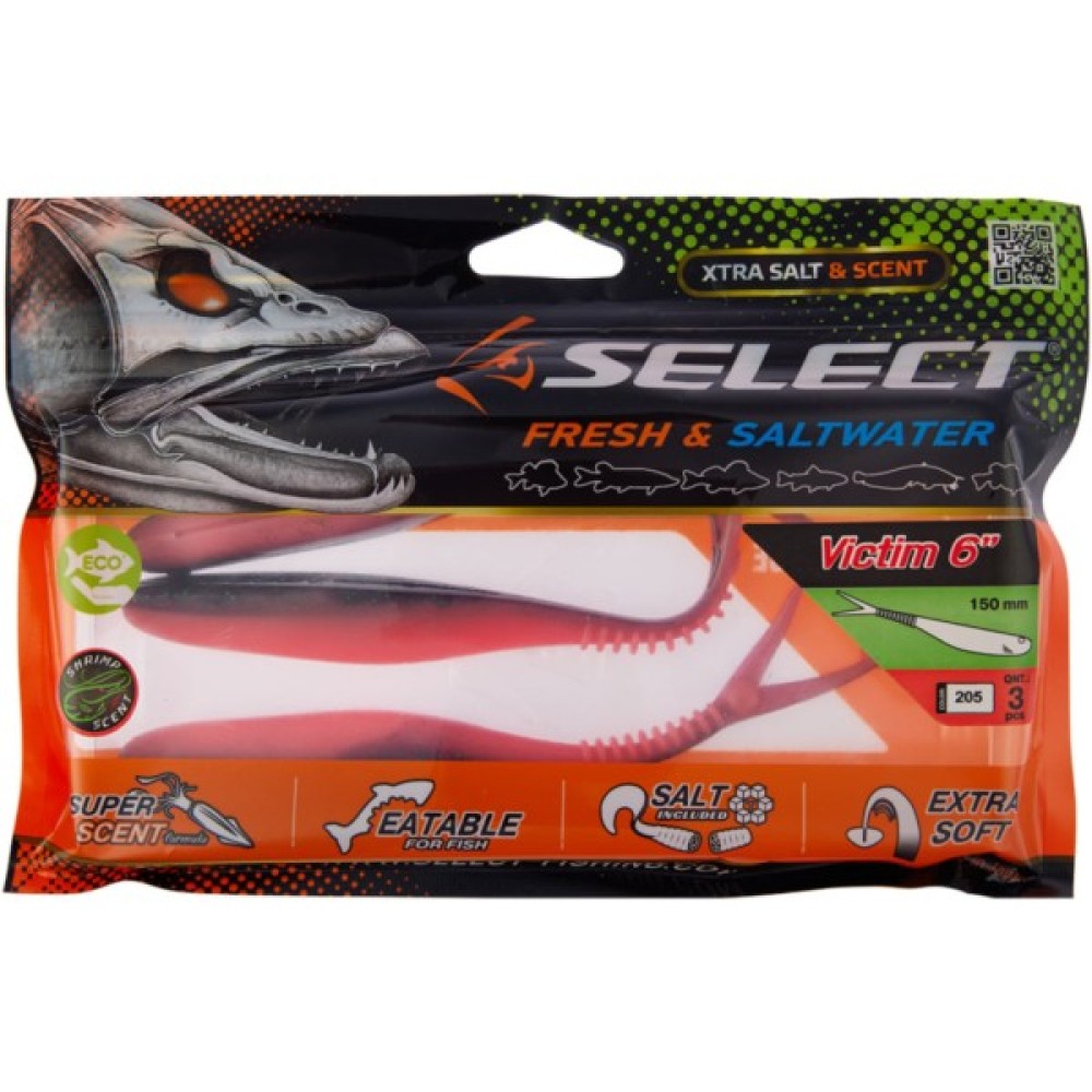 Силікон Select Victim V-Tail являє собою класичний слаг з V-подібним хвостом. Ребристе стерно хвоста сприяє збільшенню його міцності без шкоди рухливості. Приманка може оснащуватися на багато видів монтажів та різні типи гачків.