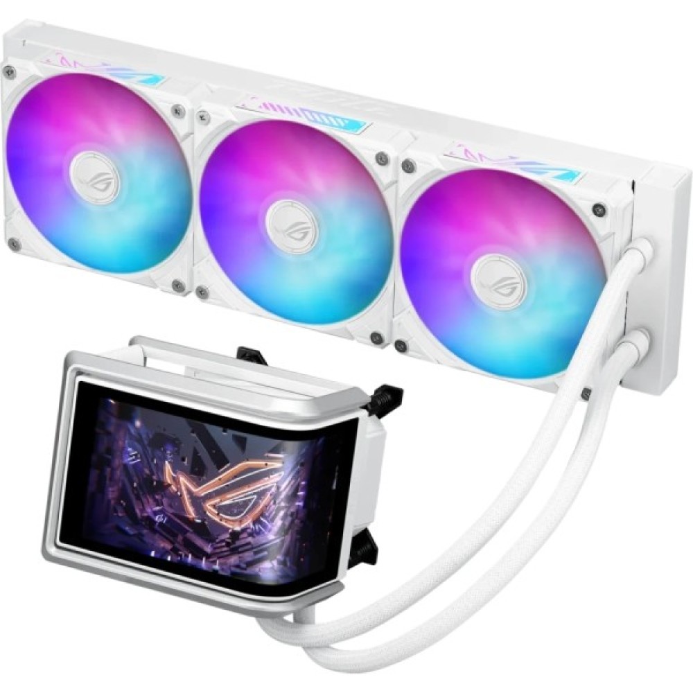 Система рідинного охолодження ROG Ryuo IV SLC 360 ARGB оснащена 6.67-дюймовим AMOLED-дисплеєм, на який за допомогою спеціального програмного забезпечення можна виводити 3D-відео, персоналізований контент та інформацію про систему для інтуїтивного керування комп’ютером. Цей інноваційний дисплей з вигнутою поверхнею руйнує межі між віртуальним і реальним світом. Короткі 200-міліметрові трубки й рухома РК-панель зменшують перешкоди для компонентів, посилюючи візуальний ефект, який створює оригінальний дизайн системи охолодження. Потужна помпа та вентилятори ROG ARGB забезпечують стабільне охолодження процесорів, зокрема серій AMD Ryzen 9000 та Intel Core Ultra.