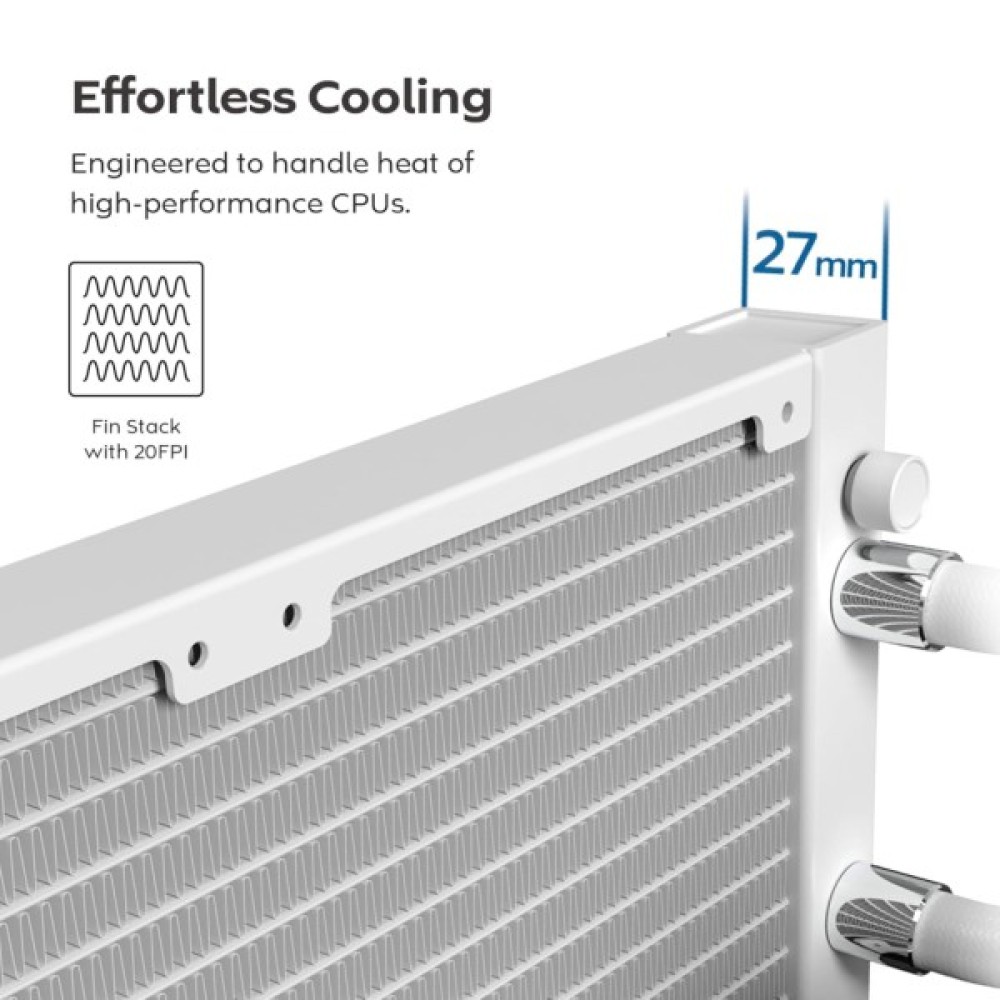 Розроблений для легкого охолодження високопродуктивних процесорів, 27-міліметровий реберний блок із щільністю 20FPI.