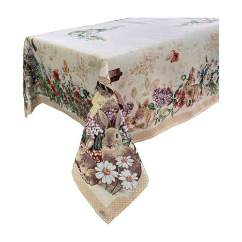 Гобеленова скатертина прикрасить вітальню або кухню. Забарвлення чудово гармоніюватиме зі світлими тонами меблів і текстилю в інтер'єрі. Іспанська тканина