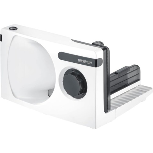 Універсальна слайсерка Severin AS 3912– компактна, зручна та ефективна. Завдяки складаній опорній пластині займає мінімум місця, легко зберігається у шафі чи шухляді. Намотувач кабелю акуратно ховає шнур живлення на нижній стороні.