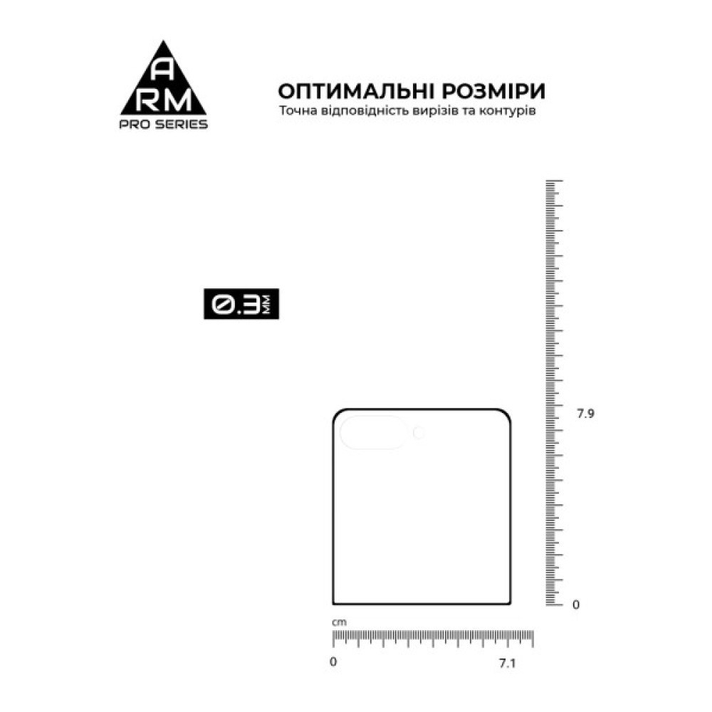 Захисне скло Armorstandart Pro Series має оптимальні габарити та товщину на 0,3 мм. Передбачено вирізи під усі датчики, камери та роз'єми.
