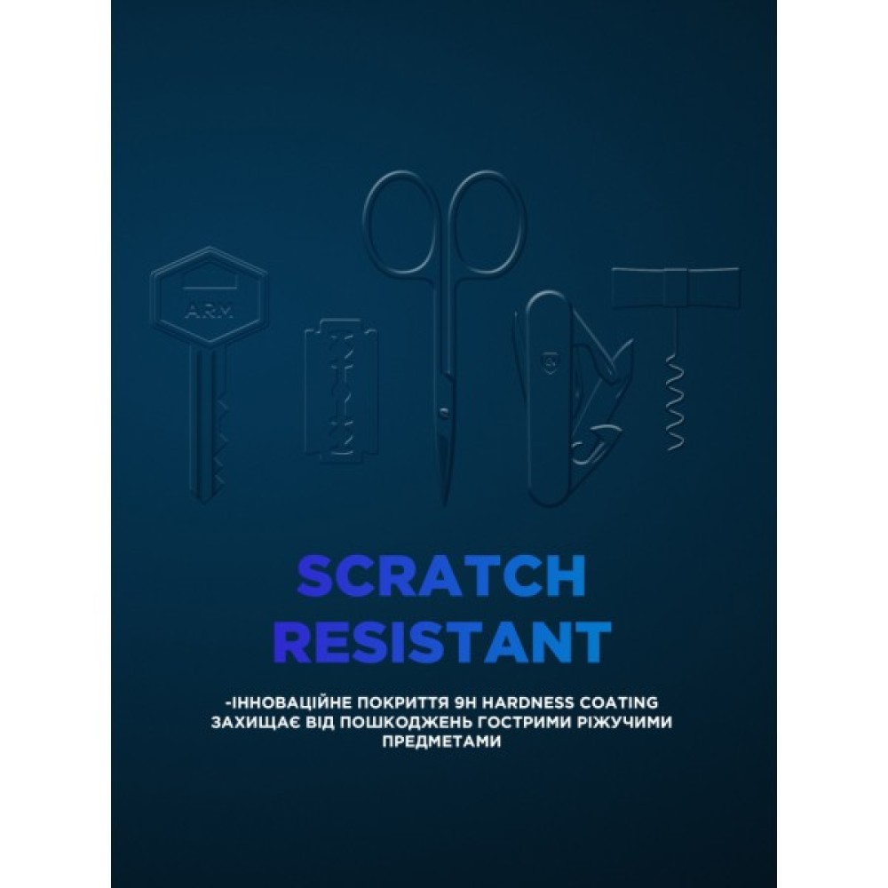 У виробництві використовується високоякісне загартоване скло, завдяки вдосконаленій технології hardness coating, воно менш схильне до виникнення подряпин і пошкоджень гострими предметами, водночас залишаючись ультратонким і міцним, має гладку поверхню й не потовщує ваш телефон.