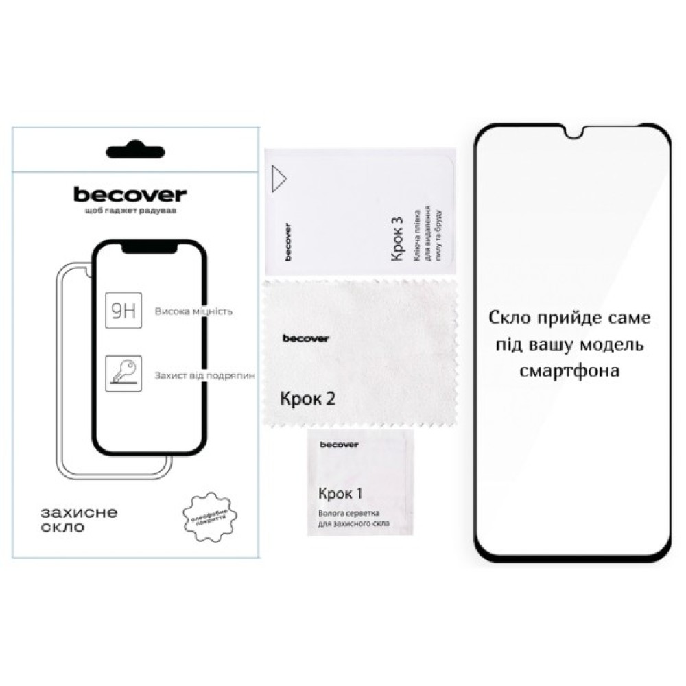 Захисне скло BeCover легко покриває дисплей телефону Xiaomi Poco C85, міцно закріплюючись по всій поверхні до його поверхні.